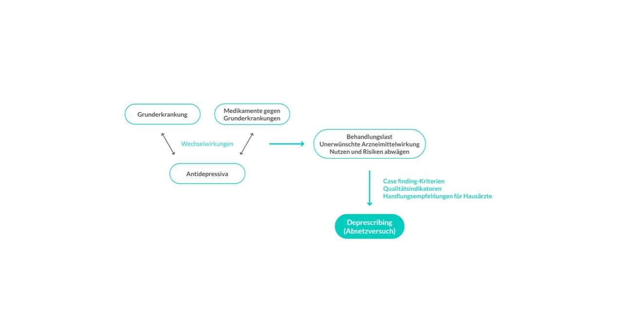 Entwicklung von Indikatoren zur Identifikation von potenzieller Über- und Risikomedikation mit Antidepressiva bei älteren Patient*innen mit Multimorbidität und Multimedikation und Entwicklung von Schulungsmaterialien zum Deprescribing
